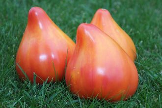 Очень популярный в мире среднеспелый и урожайный сорт. Растение высотой 1,5-1,7м. Плоды красивой сердцевидной формы, гладкие, имеют яркую оранжево-розовую окраску, мясистые и сахарные на разломе, прекрасного вкуса, массой до 500 гр.