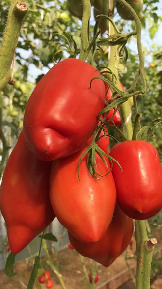 Высокорослый, очень урожайный сорт, с длительным плодоношением, с высоким качеством плодов: длинные, перцевидные, красные, массой 200-400 грамм., с носиком, мякоть густая, сладкая и вкусная, семян мало. Пригоден для приготовления соусов, свежего потребления и др.