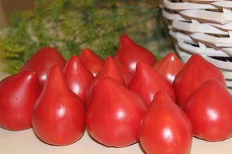 Высокорослый, среднеспелый сорт, лист тонкий, плоды весом около 250 гр. розовые сердечки, красивой формы с длинным носиком (по итогам сезона на заявленный размер не вышел, получился не очень крупным, в районе 100 грамм, но очень урожайным). Вкусный, сахарный на разломе.