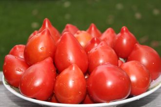 Еще один редкий сорт из серии Карликов, куст высотой 0,8 м., листья обычного типа. Плоды сердцевидные, красные, весом 50- 90 гр., очень сочные, приятного вкуса. Хороший выбор для изготовления соусов. Длительное плодоношение, прекрасная урожайность. Не трескаются .