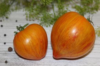 Среднеспелый, высокорослый сорт с длительным плодоношением. Куст обычного строения. Плоды красивые сердцевидные биколоры, очень вкусные, сладкие и ароматные, весом 200-250гр. На разрезе медовые с малиновыми галстучками по центру. Фамильные помидоры, семейная реликвия из Арканзаса.