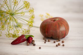 Высокорослый, высокоурожайный, крупноплодный сорт, среднего срока созревания. Плоды бордовые с зеленой штриховкой, сердцевидно-округлые, мясистые, собраны в большие кисти весом около 300-400гр. Мякоть плотная, сладкая, сахарится на разломе. Назначение салатное.