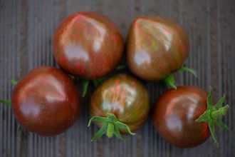 Новинка селекции, высокорослый, среднеспелый и красивый сорт. Куст компактный, плоды сердцевидные, плотные, насыщенного розового цвета с зелеными полосами, весом около 100 гр. мякоть бордовая, сочная, сладкая. Назначение универсальное.