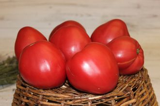 сердцевидной формы, малиновой окраски, крупные,массой 400-500 г (вначале плодоношения – до 700г),устойчивы к растрескиванию. Томаты очень