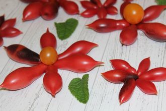 Сорт находится на стабилизации, сейчас в стадии F5. Получил свое название за потрясающе красивую окраску плодов, напоминающую драгоценные камни. Сорт полностью повторил форму и окрас представленный в прошлом году. Высокий, тонковатый стебель, весь в цвету, а затем к красивейших розово -красных с антоцианом плодах - стрелках. Урожайность очень высокая, продолжительная до заморозков. Отличный сладкий вкус, напомнил леденец. Сорт отобран и стабилизируется Мирой Алмакаевой.
