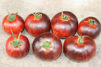 Индетерминатный, среднеспелый сорт. Куст компактный, плоды плоскоокруглые, красивые, на красном фоне размытые полосочки и штрихи, антоциановый верх. Вес 60-100 грамм, мясистые, душистые, ароматные, вкусные. Вкус сложный: и сладость, и терпкая нотка. Назначение универсальное.