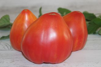 Высокорослый, среднего сорта созревания. Плоды-биколоры сердцевидной формы, оранжевые с розово-малиновыми разводами, поражают формой и своей красотой. Масса 200-350 грамм и более. Мякоть густая, сладкая с легким фруктовым оттенком, на разрезе желто-розовые с красными галстучками.!