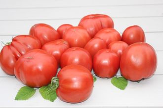Высокорослый, среднеспелый, очень продуктивный сорт с длительным периодом плодоношения: полные кисти висят по всей высоте ствола. За один раз дал внушительный сбор качественных плодов, затем повторил результат. Плоды-корзинки или кошелечки крупные, тяжелые, массой 300-400 грамм, мякоть розовая, хорошей плотности, очень вкусная и сладкая.