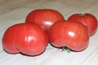 Сорт высокорослый, среднеспелый, куст крепкий, можно вести как в один, так и в два стебля. Плоды плоскоокруглые, весом 400-700 грамм, цвет розово-малиновый, плечики ребристые. Изумительный, сбалансированный вкус. Сорт считается одним из лучших шедевров мировой помидорной классики.