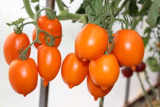 Высокий, среднеспелый, высокоурожайный сорт. Кисти сложные с большим количеством плодов. Томаты золотисто-оранжевые, овальные, с носиком, массой 80 – 120 гр. Плотные, мясистые, сладкие, отличного вкуса. Вкусны в свежем виде, подойдут и для консервирования.