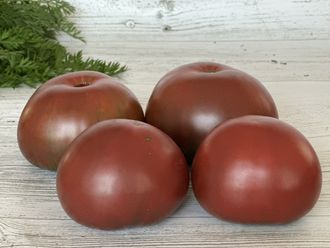 Среднеспелый, индетерминантный сорт. Высота куста 1.5 м. Плоды плоскоокруглые, тяжелые, красивого шоколадно-терракотового цвета с легким оливковым оттенком на плечиках. Вес плодов 200-300 гр. Очень вкусные. Вкус сбалансированный, насыщенный. Мякоть бордовая, сочная, ароматная. Отличный салатный сорт.