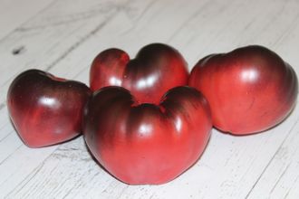 Растение компактное, малооблиственное, высотой до 1,75м. Сорт среднеспелый, высокоурожаный. Томаты изящно-сердцевидной формы, очень красивые даже в технической спелости. Зрелый томат темно-малиновый с антоциановыми темными плечиками. Средняя масса плода 180-200г, Кожица тонкая, не склонная к растрескиванию. Мякоть нежно-малиновая, средней плотности, сочная ароматная с полным балансом кислоты и сладости. Высокоурожайный сорт!