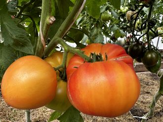 Среднеранний, высокорослый индент. Завязываемость плодов хорошая. Томаты округлой формы, желтого цвета с розовой “шапочкой” и румянами, массой 300-450 гр. Мякоть сочная, сладкая, тающая во рту, нежная. Урожайность высокая. Назначение салатное.
