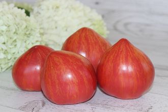 Высокорослый, высокоурожайный сорт с длительным периодом плодоношения. Плоды сердцевидные, хорошей плотности, с розовато-оранжево-желтой росписью, весом 200-450 граммов. Мякоть малинового цвета, сочная, ароматная, с очень хорошим вкусом, содержит мало семян.