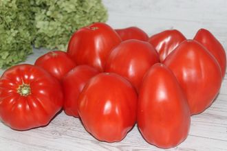Индетерминантный, среднеспелый, крупноплодный сорт томата. Плоды красные бочковидно-сливовидной формы весом 200-500 грамм. Мякоть средней плотности, качественная, вкусная. Показал очень высокую урожайность, плоды висели стеной, «как фартук». Назначение салатное и для всех видов переработки.