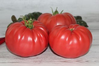 Сорт с многолетней историей! Высокорослый, среднеранний, куст мощный. Плоды очень крупные, малиновые с небольшими ребрышками, весом до 1 кг и более. Мякоть «арбузная», мясистая, вкусная, сочная и сладкая. Назначение салатное.