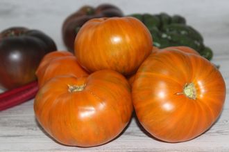 Высота 1,6-1,8 м. продуктивный сорт с красивыми крупными плодами медово-охристого цвета. Среднеспелый. Томаты одномерные, чистые, средний вес 200-300 грамм. Помидоры мясистые, сочные, вкусные, семенные камеры небольшие, расположены по периметру. Плодоношение до конца сезона без потери качества и урожайности.