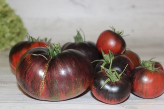 Среднеспелый, среднерослый. Плоды очень красивые, бордово-коричневого цвета с густым антоциановым разливом, как произведение искусства. Томаты весом 100-300г. Мякоть бордового цвета, вкусная, сладкая. Активное плодоношение до конца сезона. Конец сентября, а куст стоит с плодами.