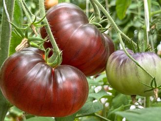 Индет 1.7 метра, среднеспелый, плоды плоскоокруглые с небольшими ребрышками, средним весом 150-200 грамм, очень красивые, вкус насыщенные с выраженной сладостью. Поразил окраской плодов: в стадии созревания красивый переход от пурпурно-фиолетового цвета к неоновому красному.
