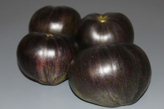Куст высотой 1,7 метра, обычного строения. Плоды густо покрыты антоцианом с переливами, самые крупные были весом 250 грамм. Мякоть нежная, на разрезе сочетание светлого цвета с изумрудным, вкус потрясающий, фруктово-сладкий. Урожайность высокая.