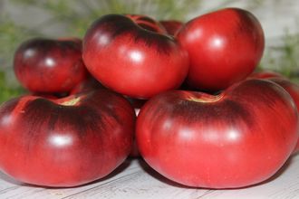 Ранний сорт томата. Высокорослый. Урожайный сорт. Плоды выровненные, красивые, были по 150 грамм, много! Основная окраска томатов красная, антоциан проявляется очень сильно. На солнце плоды темно-фиолетовые, практически черные Мякоть плотная, очень вкусная, с ярким фруктовым вкусом.