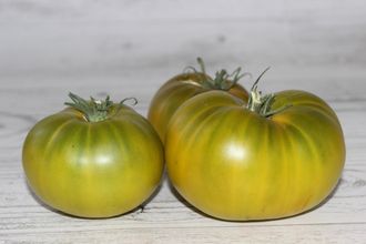 Отличный сорт с выдающимся вкусом. Индетерминантный, продуктивный, с активным плодоношением до конца сезона. Кусты хорошо облиствленные. Плоды зеленые, салатного назначения. Вкус, как и у большинства зеленоплодных сортов, восхитительный, сладкий, напомнил вкус киви. Средний вес 250 грамм.