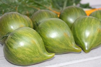 Цвет изумрудно-зелёный с рисунком. Вес: 200-400 грамм. Мякоть десертная. Семенных камер практически нет. Вкус насыщенный сладкий, с богатым фруктовым послевкусием и едва уловимой пикантной кислинкой, которая подчеркивает сладость. Плоды не растрескиваются. Идеален для свежих салатов.