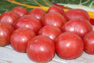 Высота 1,5 метра, кустик основательный, очень урожайный- завязал полные кисти по всей высоте ствола. Созревание дружное. Плоды среднего размера, пестрые, яркие, красивые, мясистые замечательные, насыщенного вкуса с хорошей сладостью и незначительной кислинкой, лежкие, не трескаются, имеют очень хорошие товарные свойства.