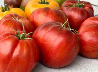 Высота 1,6 метра, плоды очень красивые, увесистые по 400-800 грамм, мякоть - сплошное мясо, хорошей плотности сочное, на разрезе не течет. Веду свой дневник впечатлений о новых сортах томатов, написала: "Наивкуснейший, мякоть как будто подсолена - настолько гармоничный и глубокий вкус. Семян очень мало".