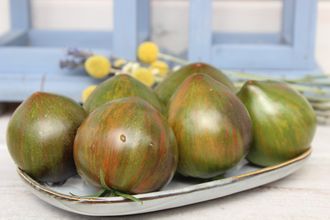 Высокорослые, сильные растения с крупным листом, среднераннего срока созревания. Кисть короткая: не перегибается, не требует подвязки. Изумрудные плоды расписаны нежно-розовыми штрихами, сверху добавляется антоциан. Вес 150-250 грамм. Томаты -упругие сердечки с мясистой стеночкой, густым гелем внутри и удивительным вкусом: и сладость, и фруктовые ноты. Высокая урожайность! Молодой сорт Софии Сааковой.