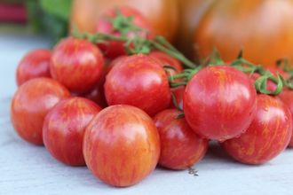 Сорт, созданный Биллом Йодером. Плоды черри круглые полосатые малиновые в желтую полоску весом 30-40 грамм, с превосходным сладким с легкой кислинкой вкусом. Растение крепкое высотой около 90 см с крупными красивыми морщинистыми листьями. Прекрасно подходит для выращивания в контейнере Сорт среднеспелый, при правильном уходе будет плодоносить до наступления заморозков. Отлично подходит для салатов, употребления в свежем виде.