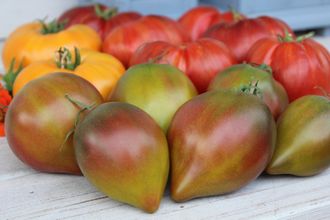 Среднеспелый, высота куста 2 метра. Плоды пастельного окраса: изумрудно-розово-пурпурно-желтые с антоциановой шапочкой сердца, весом 200-300 грамм, красивой вытянутой формы с носиками. Очень красивые! Вкус просто супер. Идеальный баланс сахара и кислоты. Семян в плодах очень мало, в некоторых плодах их совсем нет. Очень урожайный, активное плодоношение до конца сезона.
