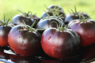 Новый сорт из Сербии. Высота до 120 см, прочный куст, ранний, плоды от 300 до 800 грамм, темно-бордовые с густым черным антоцианом. Мякоть насыщенного бордового цвета, маслянистая плотная, сочная с отличным вкусом. Дружная отдача урожая.